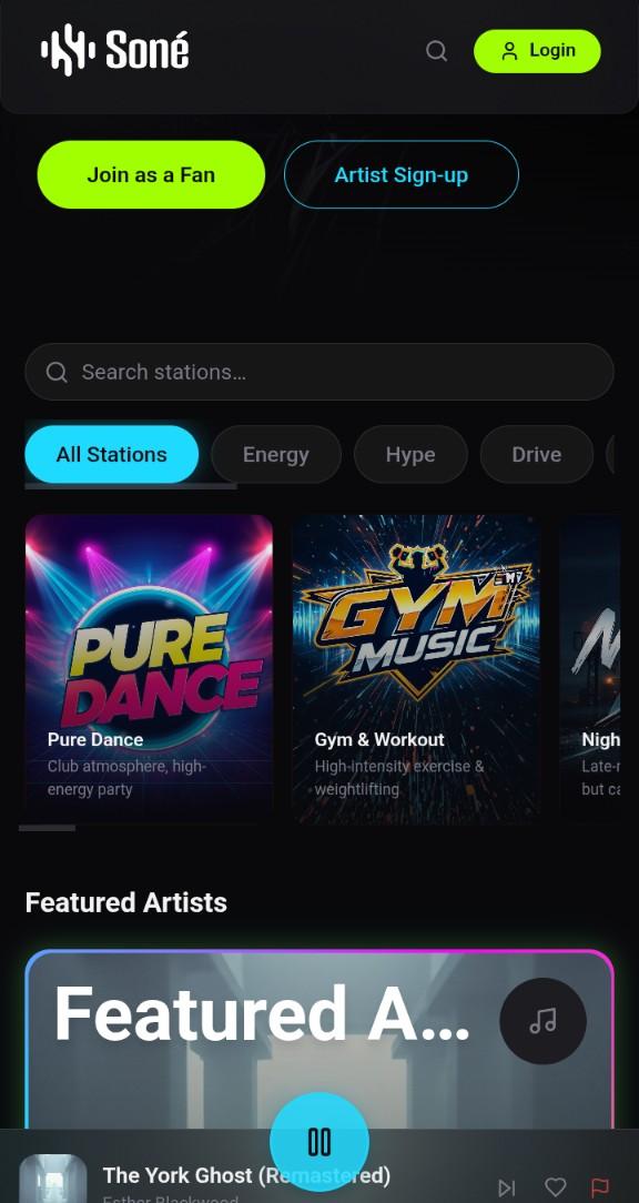 Instead of endless playlists and skip culture, Sone.fm revives the feeling of tuning into a live frequency — enhanced by artificial intelligence and modern creator economy mechanics.